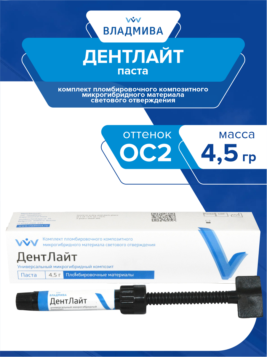 Универсальная композитная паста-шприц ДентЛайт оттенок ОС2 4,5 гр.: сравнение цен, характеристики, фото, актуальное наличие и цены.