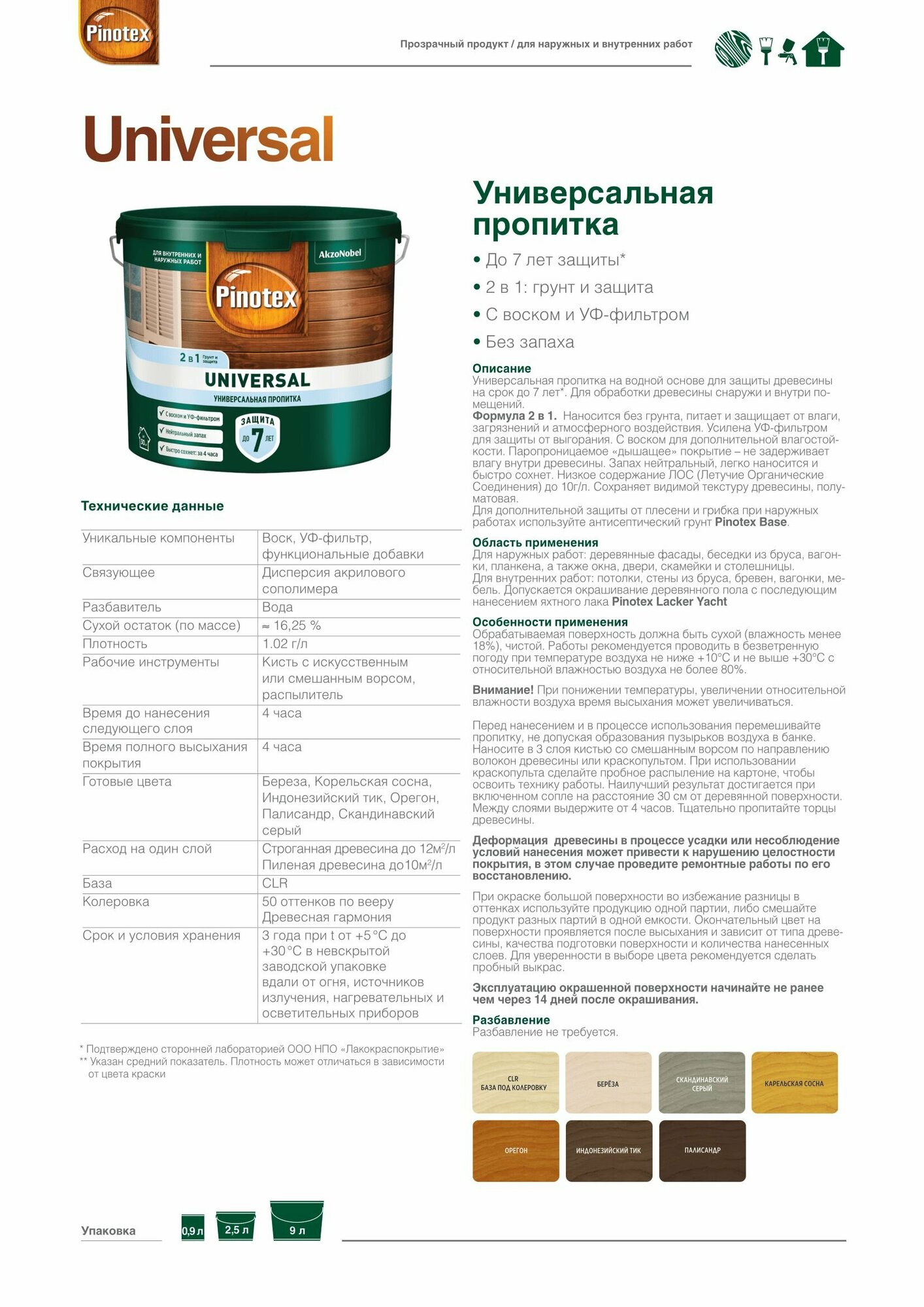 Универсальная пропитка Pinotex Universal (0,9л) индонезийский тик: сравнение цен, характеристики, фото, актуальное наличие и цены.