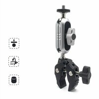 • Цвет: серебристо-черный • Материалы: алюминиевый сплав • Ширина зажима: 10 мм-50 мм • Макс. нагрузка: 1,5 кг • Для велосипедов, мотоциклов, столов, рулей, труб • Совместимость: Экшн-камеры (GoPro, DJI Action, Insta360 ONE X1/X2/RS, SJcam и др.) и фотокамеры