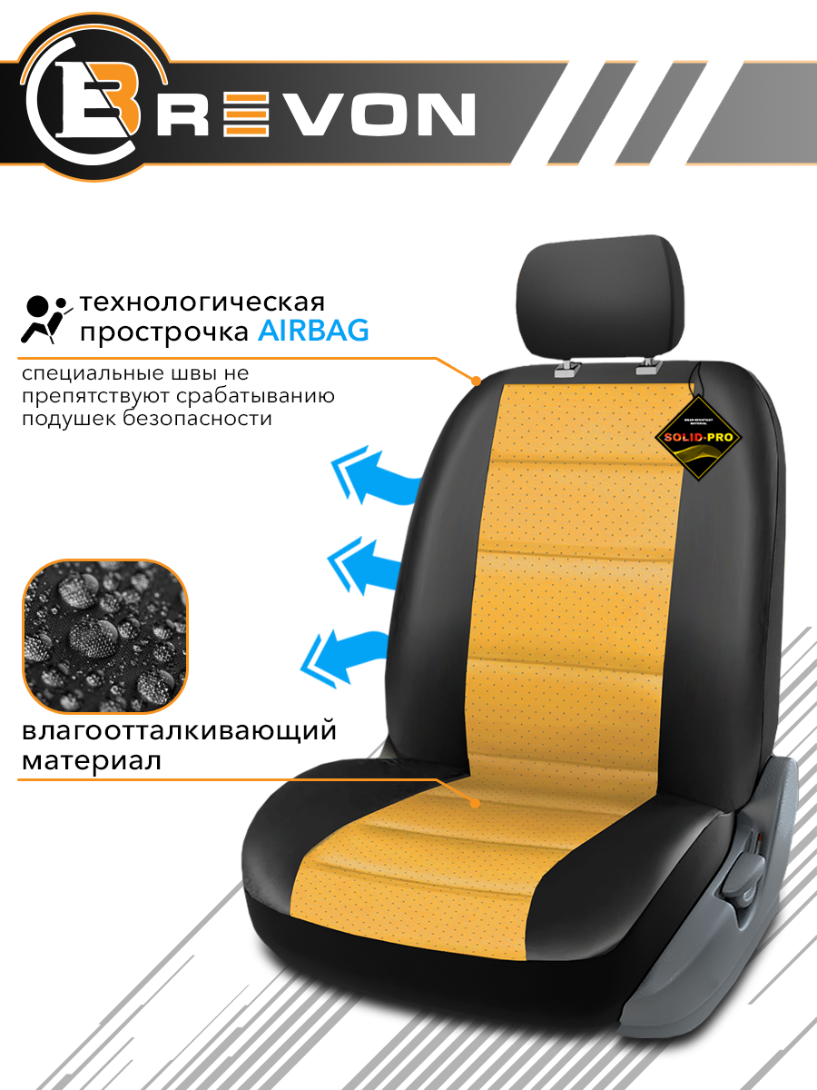 Раздельная схем надевания поможет произвести быструю установку. В комплекте чехлы только для переднего ряда сидений.