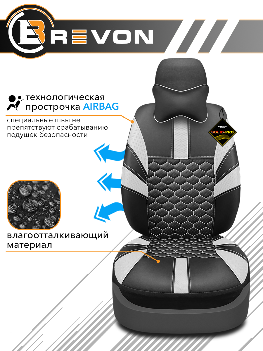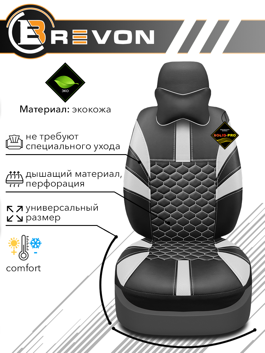 Универсальные автомобильные чехлы OLIMPIC производятся из экокожи, выполненной дизайнерской стежкой КУБ. Изнаночная часть проклеена огневым поролоном 5 мм. Задняя часть передней спинки сшита из высокоэластичной экокожи, благодаря чему авточехлы подходят почти на все автомобили. Прострочки AIRBAG позволяют применять чехлы в авто с подушками безопасности. Материал имеет влагоотталкивающее покрытие, не удерживает запахи, простой в уходе, устойчив к разрывам и износу. Раздельная схема надевания поможет произвести быструю установку. Современный и спортивный дизайн. В комплекте ДВЕ подушки-упор под голову на передние сиденья.
