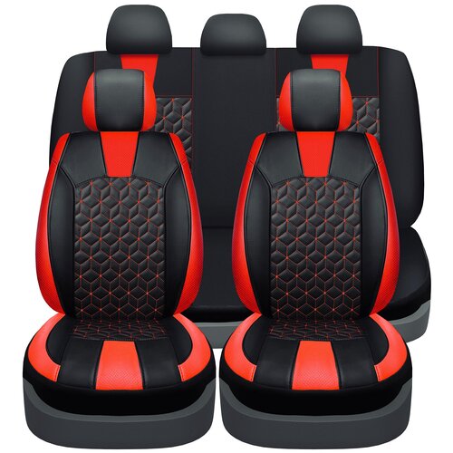 Универсальные автомобильные чехлы PALADIUM производятся из экокожи, выполненной дизайнерской стежкой КУБ. Изнаночная часть проклеена огневым поролоном 5 мм. Задняя часть передней спинки сшита из высокоэластичной экокожи, благодаря чему авточехлы подходят почти на все автомобили. Прострочки AIRBAG позволяют применять чехлы в авто с подушками безопасности. Материал имеет влагоотталкивающее покрытие, не удерживает запахи, простой в уходе, устойчив к разрывам и износу. Раздельная схема надевания поможет произвести быструю установку. Современный и спортивный дизайн.