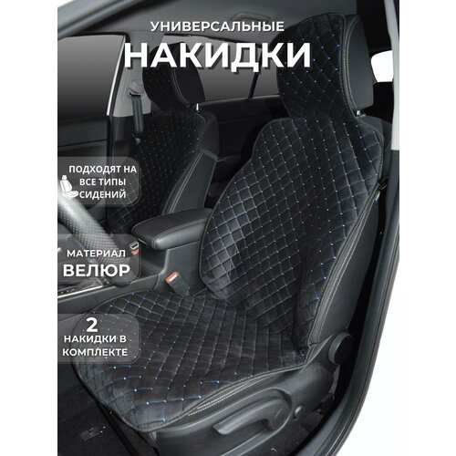 MELKUMYANPRIDE/ Универсальные чехлы накидки на передние сидения из велюра 2шт. Модель Адель. Черный /синяя строчка: сравнение цен, характеристики, фото, актуальное наличие и цены.