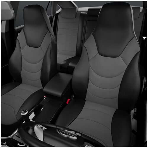 2 передние спинки (подголовники встроенные, сзади имеются карманы на молнии), 2 передние сидушки; Задняя спинка, 1 шт.; задняя сидушка 1 шт.; (на задней спинке и задней сидушки по 3 молнии); 3 задних подголовника (2шт.- по форме шапка, 1шт. Г-образный), также 4 клина (для функции деления задней спинки или сидушки 40/60 и 50/50)