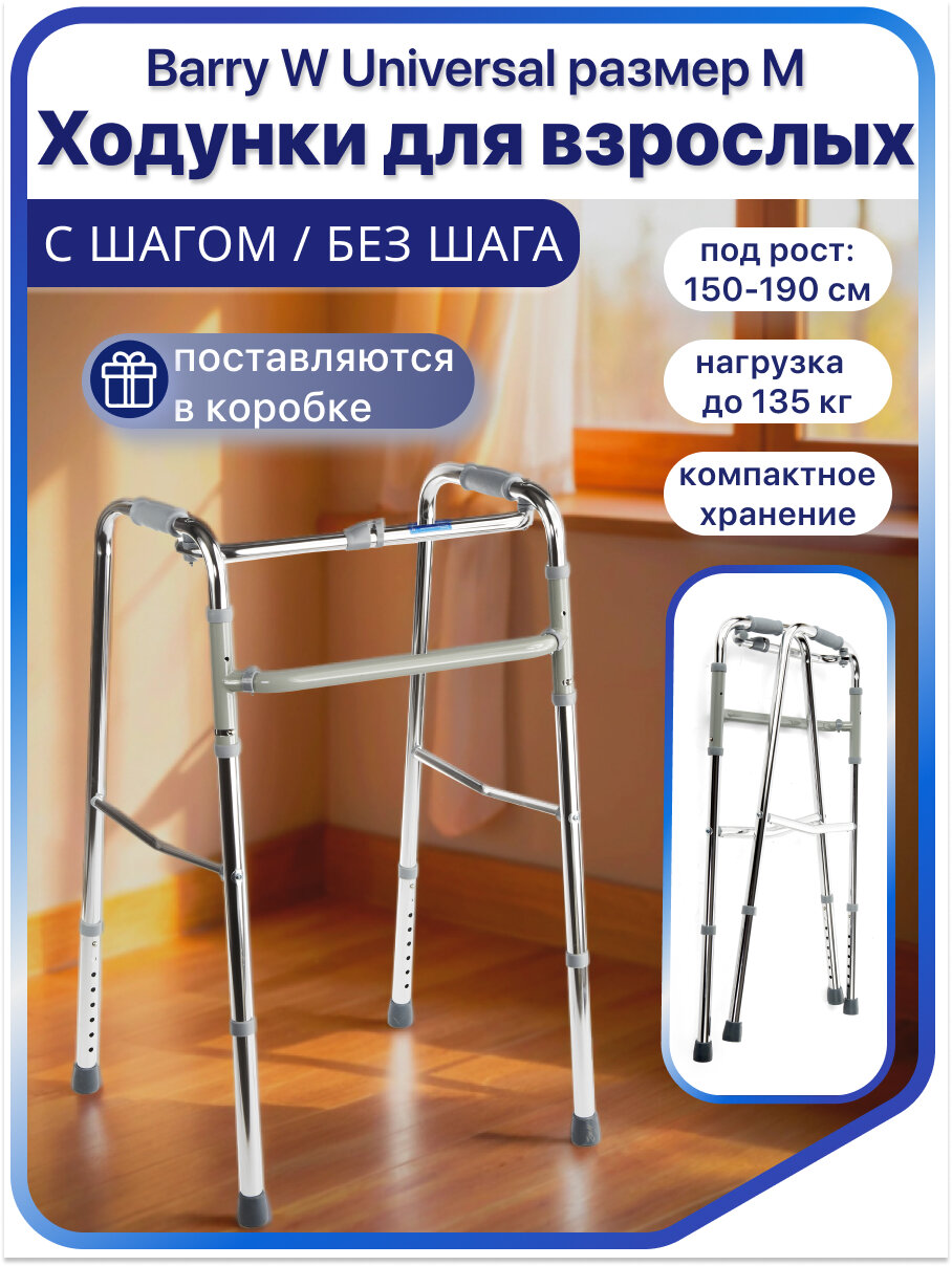 Опоры-ходунки W Universal М от компании Barry-медицинское изделие, специально разработанное для взрослых, детей, подростков, инвалидов, пожилых и людей с ограниченными возможностями. Конструкция предназначена для облегчения передвижения и реабилитации, и подходит пользователям, чей рост составляет 150-190 см.