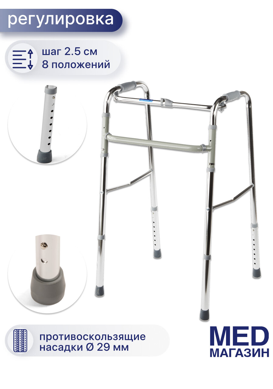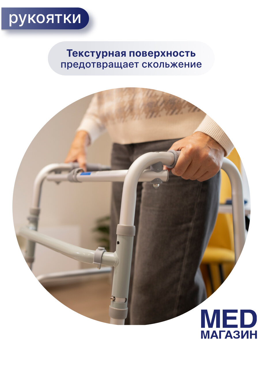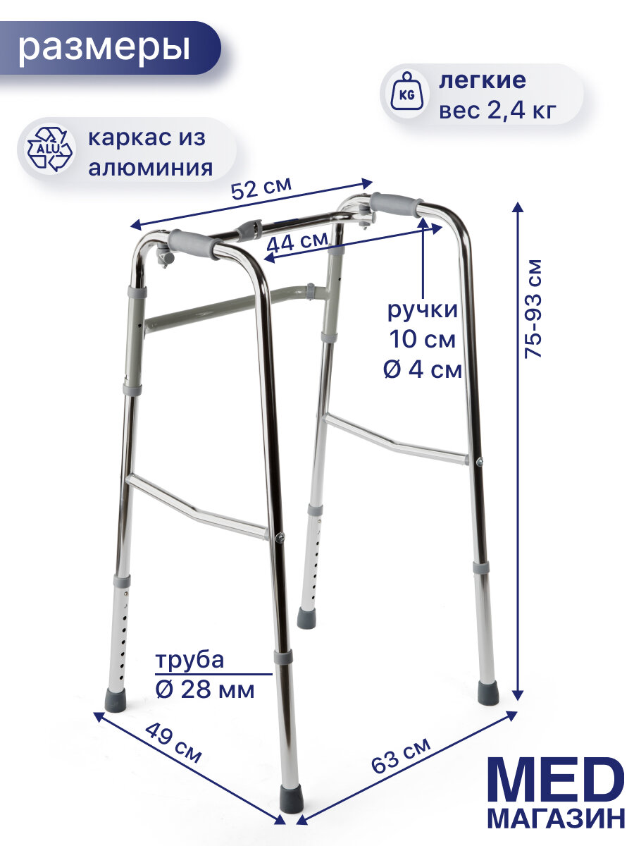 Универсальные ходуны с пластиковыми круглыми ручками не нужно собирать, они поставляются в сложенном виде. Чтобы начать ими пользоваться, достаточно просто разложить их, потянуть за поручни в разные стороны и ходунки готовы к использованию!