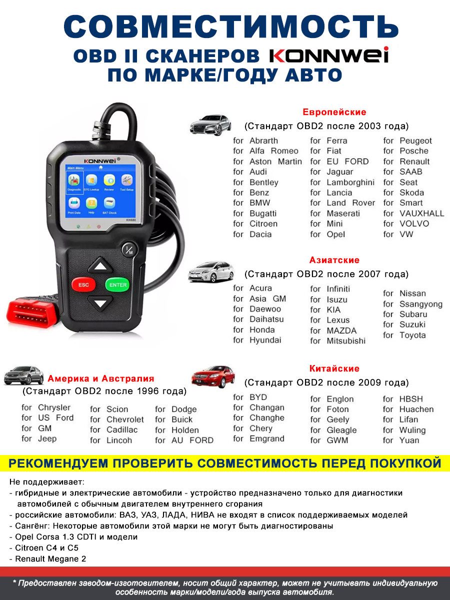 Автосканер KONNWEI KW680 • OBD2 диагностический сканер • Чтение и сброс ошибок, Live Data, диагностика двигателя 12V: сравнение цен, характеристики, фото, актуальное наличие и цены.