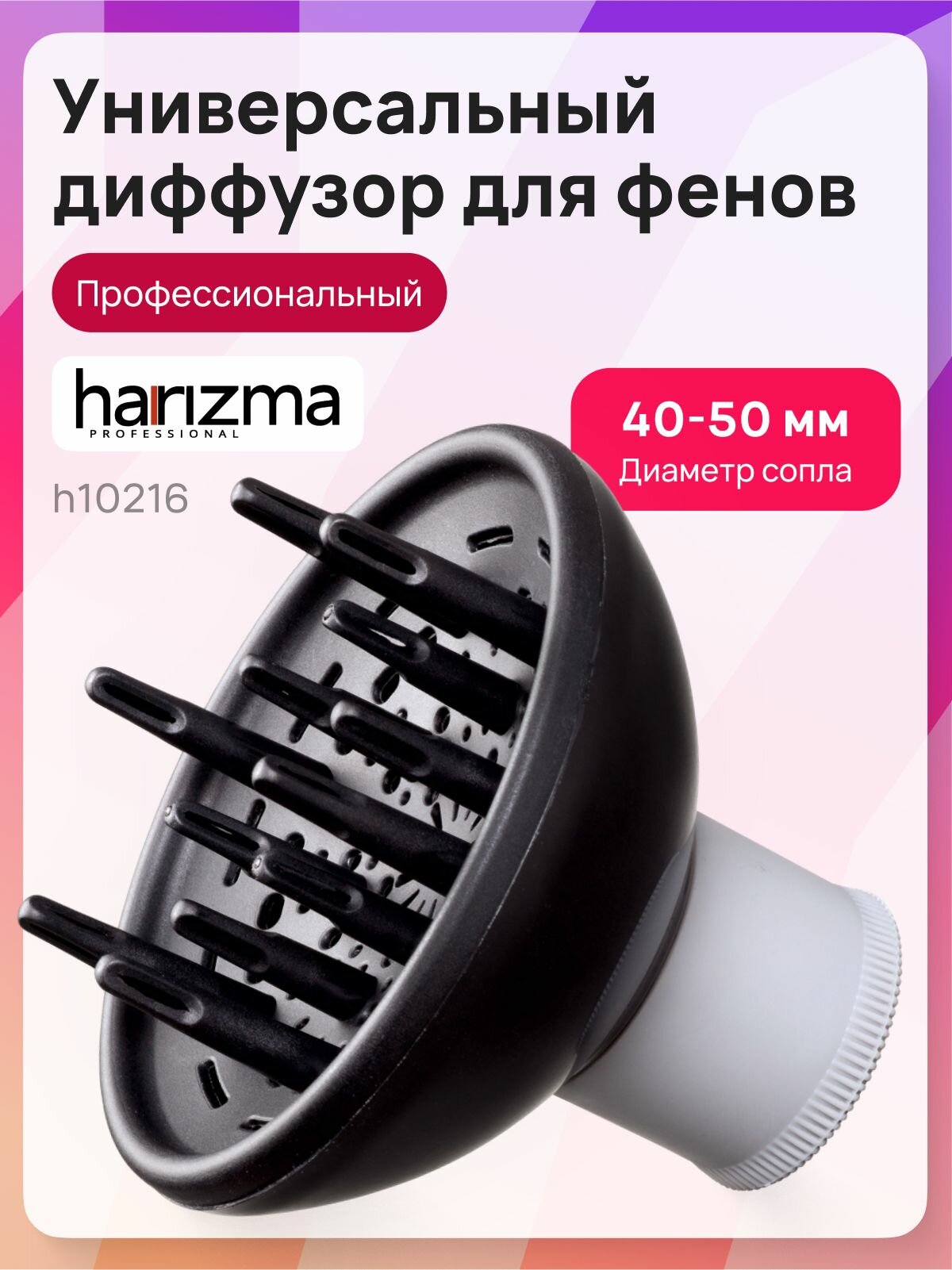 Купить Универсальный диффузор для фена harizma h10216, пластик, черный с доставкой по всей России. Универсальный диффузор для фена harizma h10216, пластик, черный: сравнение цен, характеристики, фото, актуальное наличие и цены.