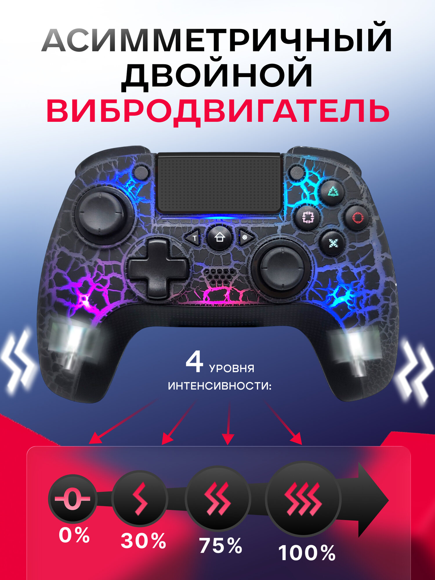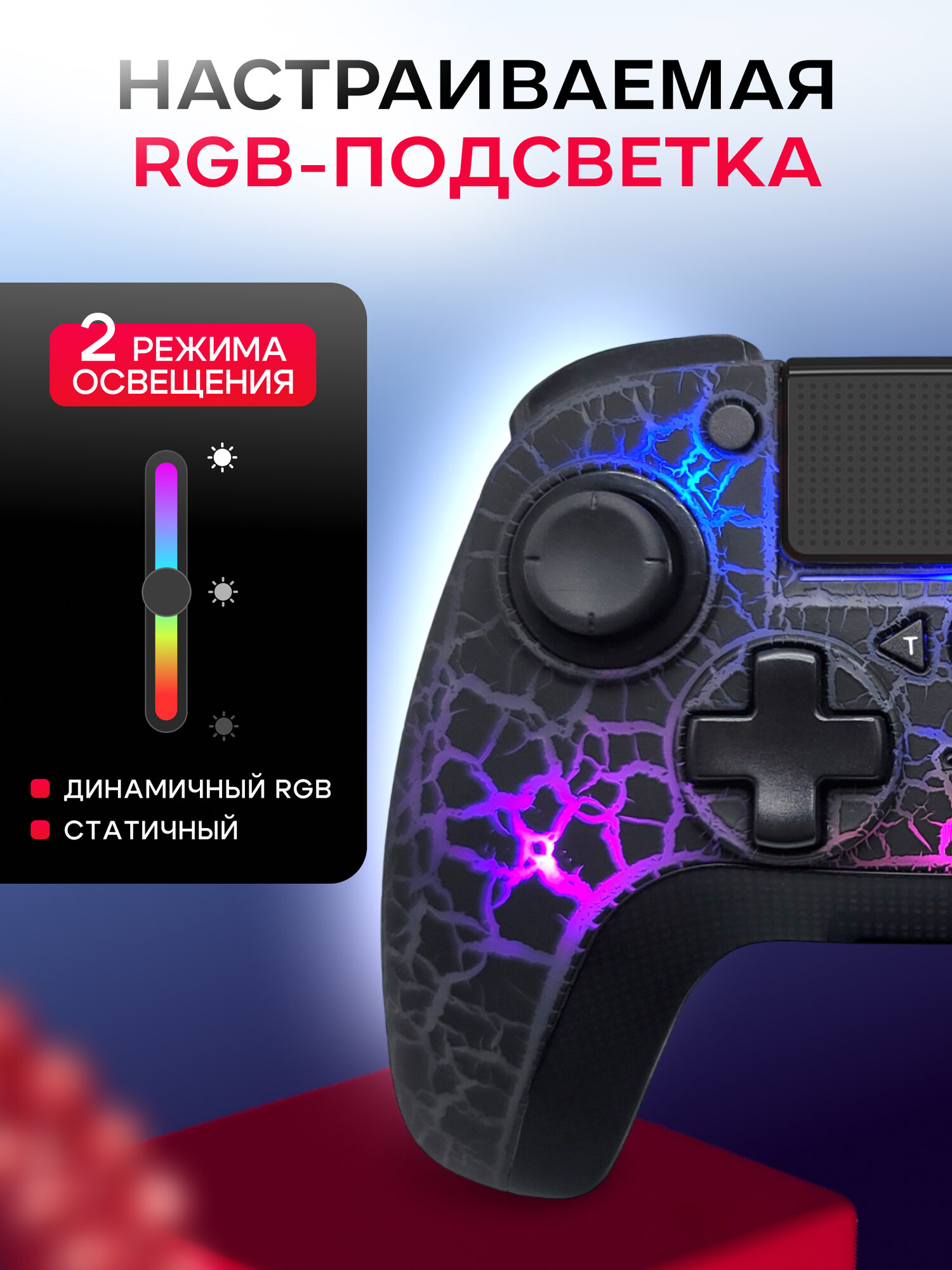 Купить Беспроводной геймпад, джойстик для телефона/ПК/PS4 чёрный с RGB-подсветкой и тачпадом POWERHUB с доставкой по всей России. Беспроводной геймпад, джойстик для телефона/ПК/PS4 чёрный с RGB-подсветкой и тачпадом POWERHUB: сравнение цен, характеристики, фото, актуальное наличие и цены.