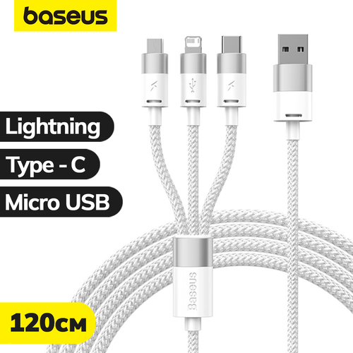 USB-кабель Baseus StarSpeed 3-в-1, USB-C + micro USB + Lightning, 3,5 а, 1,2 м (Белый)