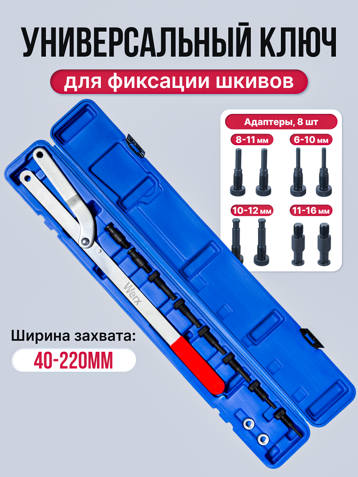 Купить Универсальный ключ , для фиксации шкива, 40-220 мм, с адаптерами с доставкой по всей России. Универсальный ключ , для фиксации шкива, 40-220 мм, с адаптерами: сравнение цен, характеристики, фото, актуальное наличие и цены.