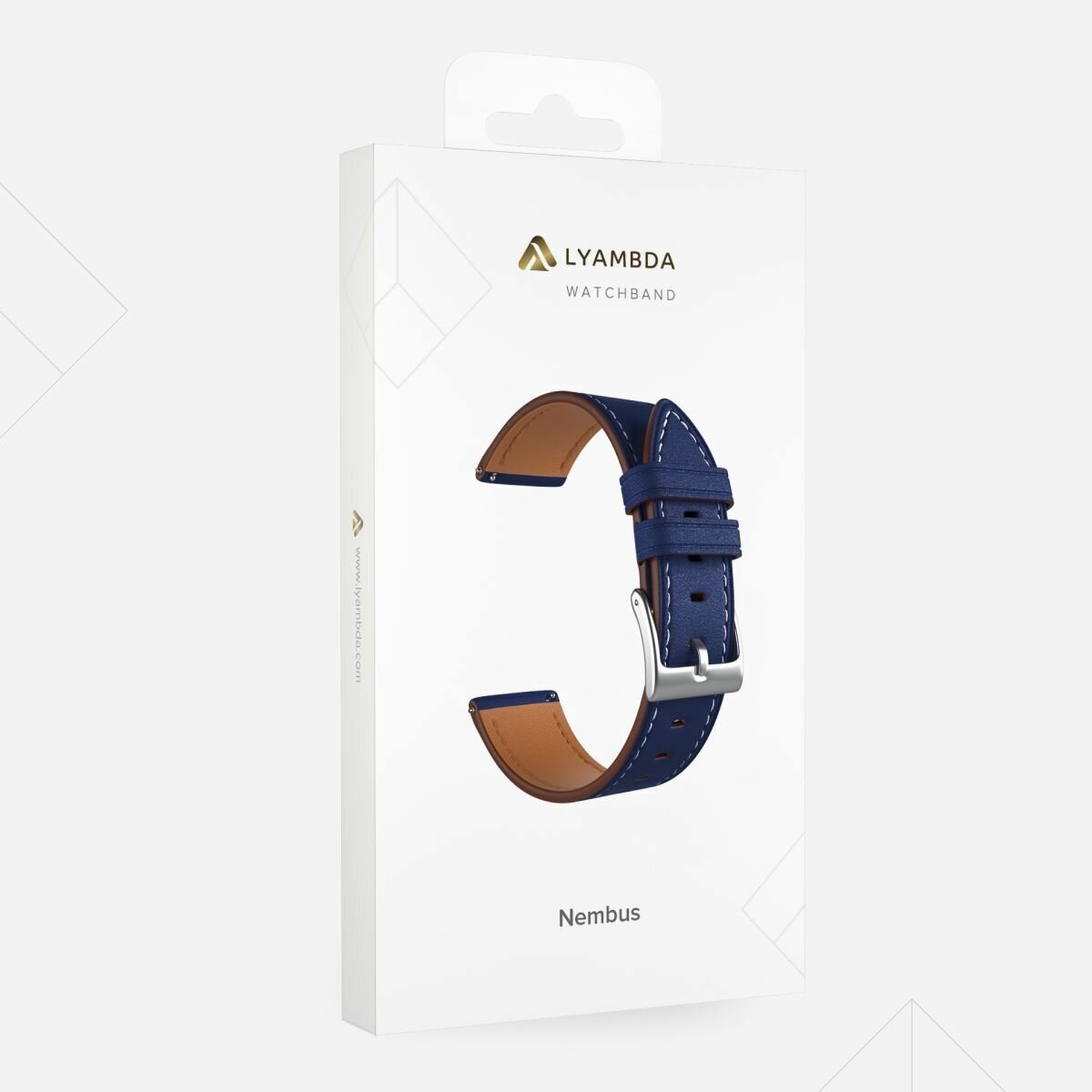 Купить Универсальный кожаный ремешок для часов 22 mm LYAMBDA NEMBUS LWA-S41-22-BL для часов Garmin, Samsung, Huawei, LG, Rolex, Honor, синий с доставкой по всей России.