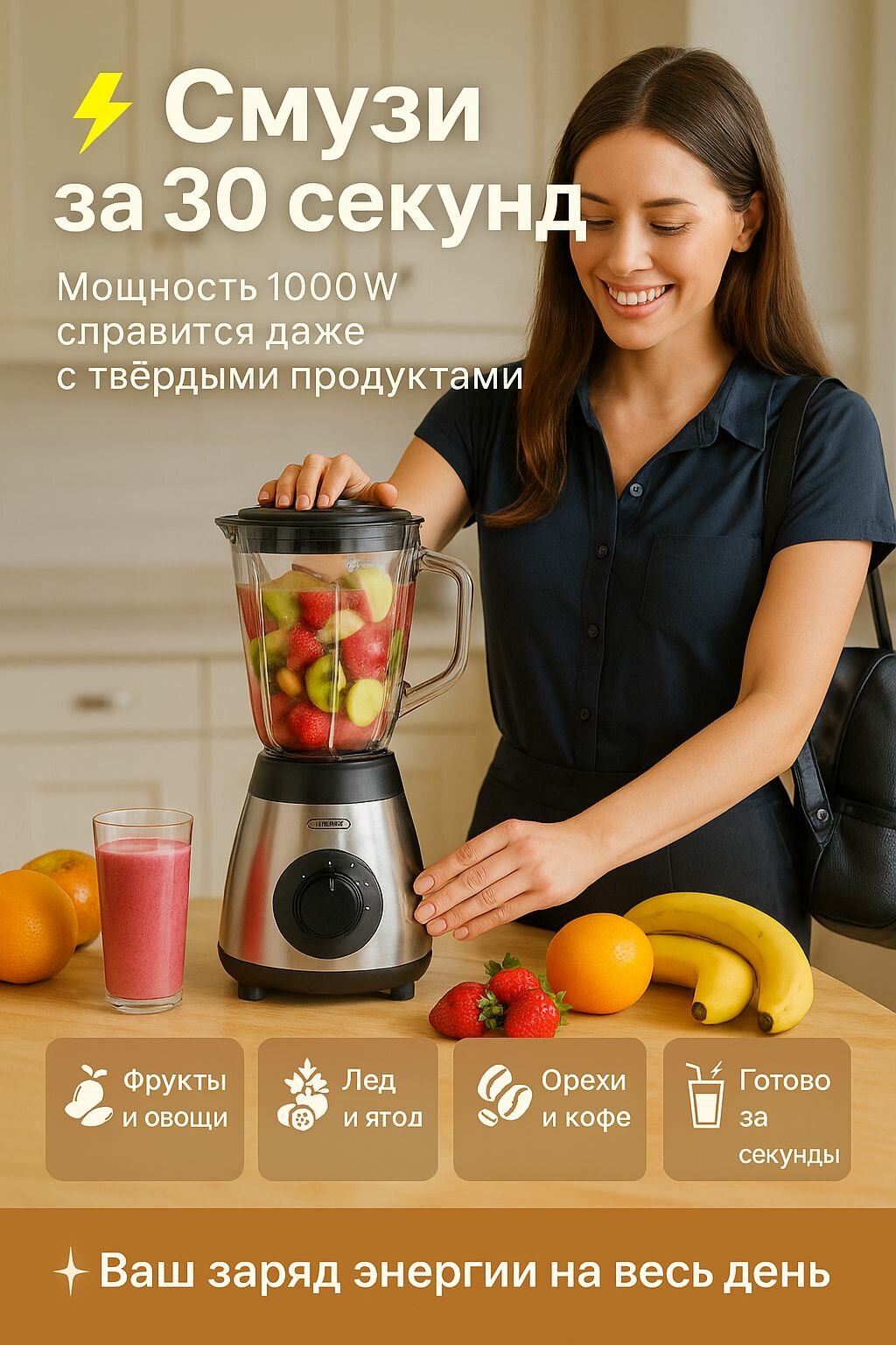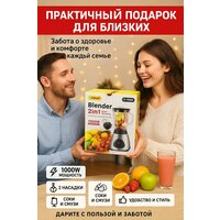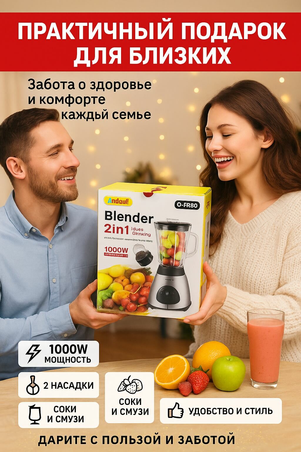 Готовьте любимые блюда, напитки и полезные смузи с многофункциональным блендером Andowl Q-FR60 2 в 1. Этот мощный прибор- кухонный комбайн сочетает функции соковыжималки и измельчителя, что делает его незаменимым помощником на кухне. С ним вы легко приготовите свежие соки, фруктовые коктейли, соусы, супы-пюре, измельчите орехи, кофе или специи. 1000 Вт мощности — быстрый и равномерный результат. Функция соковыжималки — свежие фреши и смузи за секунды. Измельчитель — подходит для кофе, орехов, овощей и специй. Прочный стакан из стекла с удобной крышкой. 3 скорости + импульсный режим для идеального контроля. ✅ Универсальный прибор 2 в 1 — экономия места и денег ✅ Удобный в использовании и уходе ✅ Стильный дизайн для современной кухни ✅ Подходит для семьи и ежедневного использования С блендером Andowl Q-FR60 вы сможете легко готовить полезные напитки и блюда, наслаждаясь вкусом и свежестью каждый день.