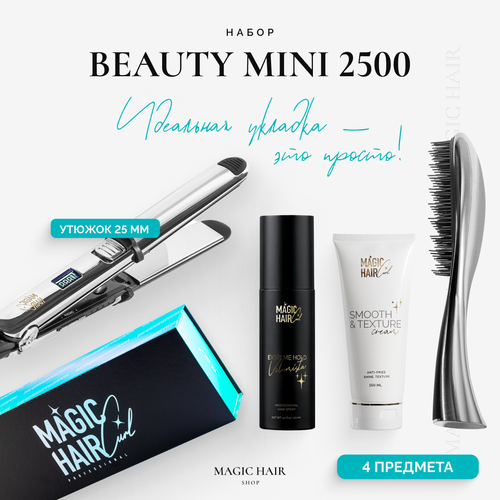 Не знаете какой оригинальный подарок подарить девушке? Подарочный набор для волос отличная идея подарка на 8 марта и день рождение. Бьюти бокс включает в себя следующий стайлинг: 1) Magic Hair Curl Volumista, спрей для объёма, 120 мл ; 2) Профессиональный утюжок для волос MAGIC HAIR CURL; 3) Крем для укладки и снятия статистического напряжения Magic Hair Curl SMOOTH& TEXTURE Cream; ; 4) Magic Hair Curl Magic Hair Curl Hair Brush Silver массажная расческа для лёгкого расчесывания