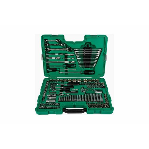 Универсальный набор инструмента, 150 шт, 1/4, 3/8 и 1/2 DR, Sata 09510 поставляется в удобном, закрывающемся кейсе для надежного хранения и транспортировки без риска утери компонентов. Каждый инструмент занимает свое отдельное место и легко извлекается из ячейки. Все предметы из представленного набора изготовлены из высокопрочной стали и имеют высокий рабочий ресурс. Данный комплект станет прекрасным помощником для выполнения широко спектра ремонтных и монтажных работ с использованием крепежных элементов различных типов и размеров.