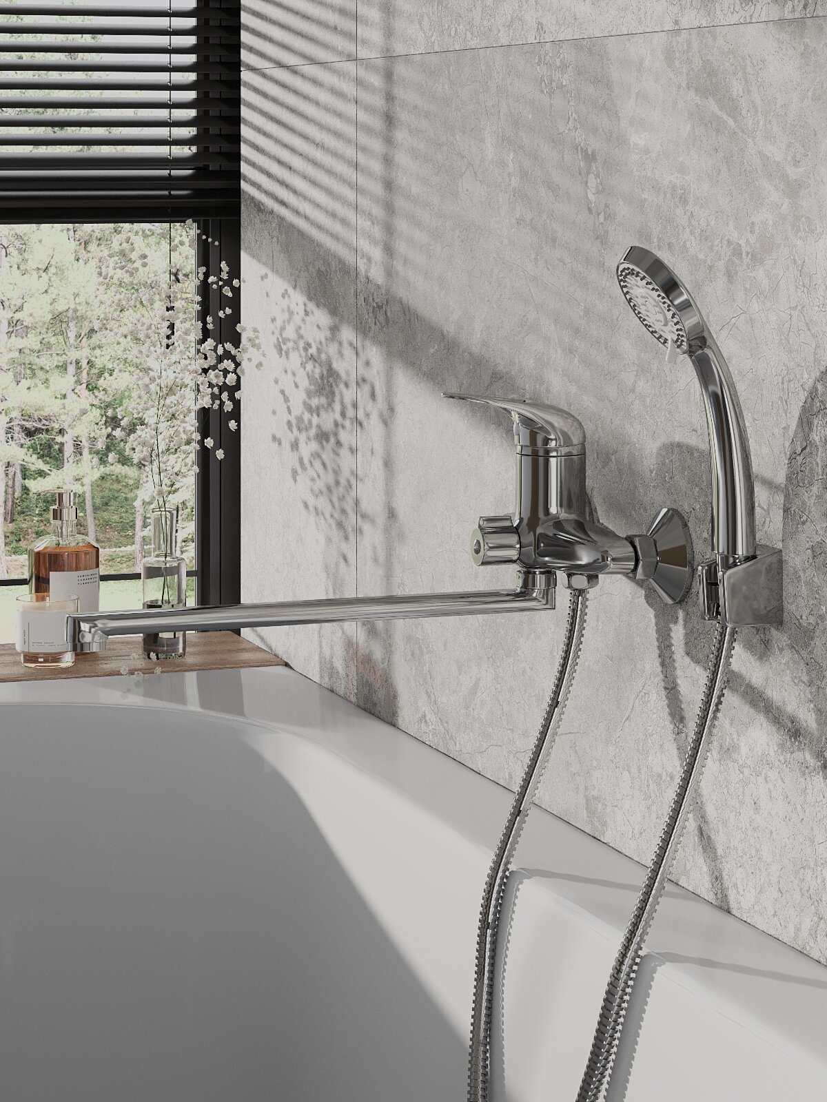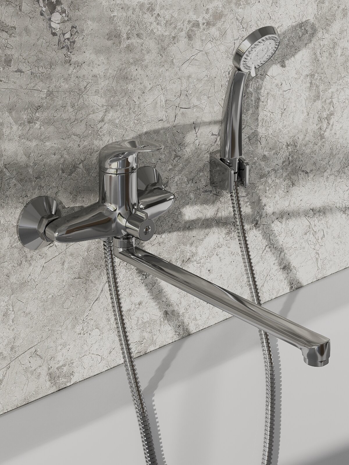 Универсальный однорычажный смеситель Agger 06GR21100 с длинным поворотным изливом, с душем, латунь, хром: сравнение цен, характеристики, фото, актуальное наличие и цены.