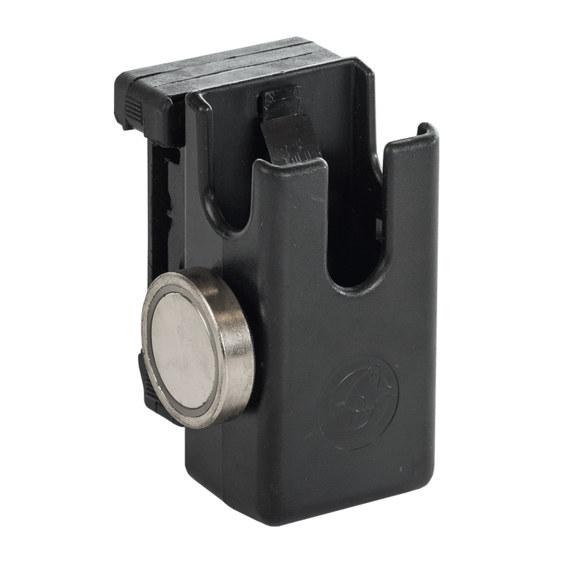 Подсумок универсальный с магнитом. Подходит для большинства двухрядных магазинов. Имеет оригинальное крепление, подходящее под любую толщину ремня. В комплекте крепление и два подсумка. Один подсумок для размещения магазина паралелльно ремню, другой перпендикулярно. Каждый подсумок регулируется по оси на 360 градусов. Вы можете пользоваться этим подсумком как магнитным, так и как обычным, не устанавливая дополнительный магнитный подсумок и не сдвигая основной подсумок назад. Никакой подгонки подсумка под магазин. Никаких дополнительных регулировочных проставок под магазины. Просто вставьте магазин в подсумок и начинайте тренировку или соревнование.