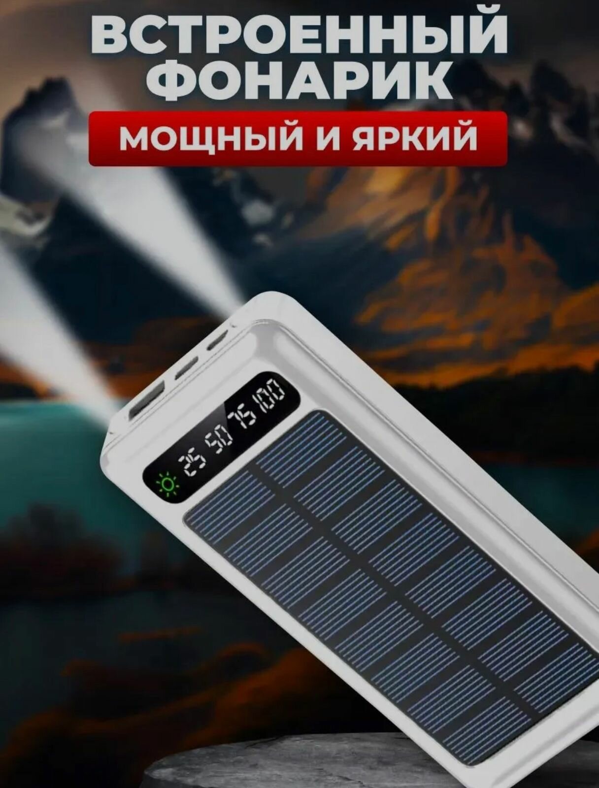 Powerbank «SOLAR ENERGY» 50000 mAh со Встроенными кабелями, Cолнечная батарея/Power bank solar energy/ внешний аккумулятор, белый: сравнение цен, характеристики, фото, актуальное наличие и цены.