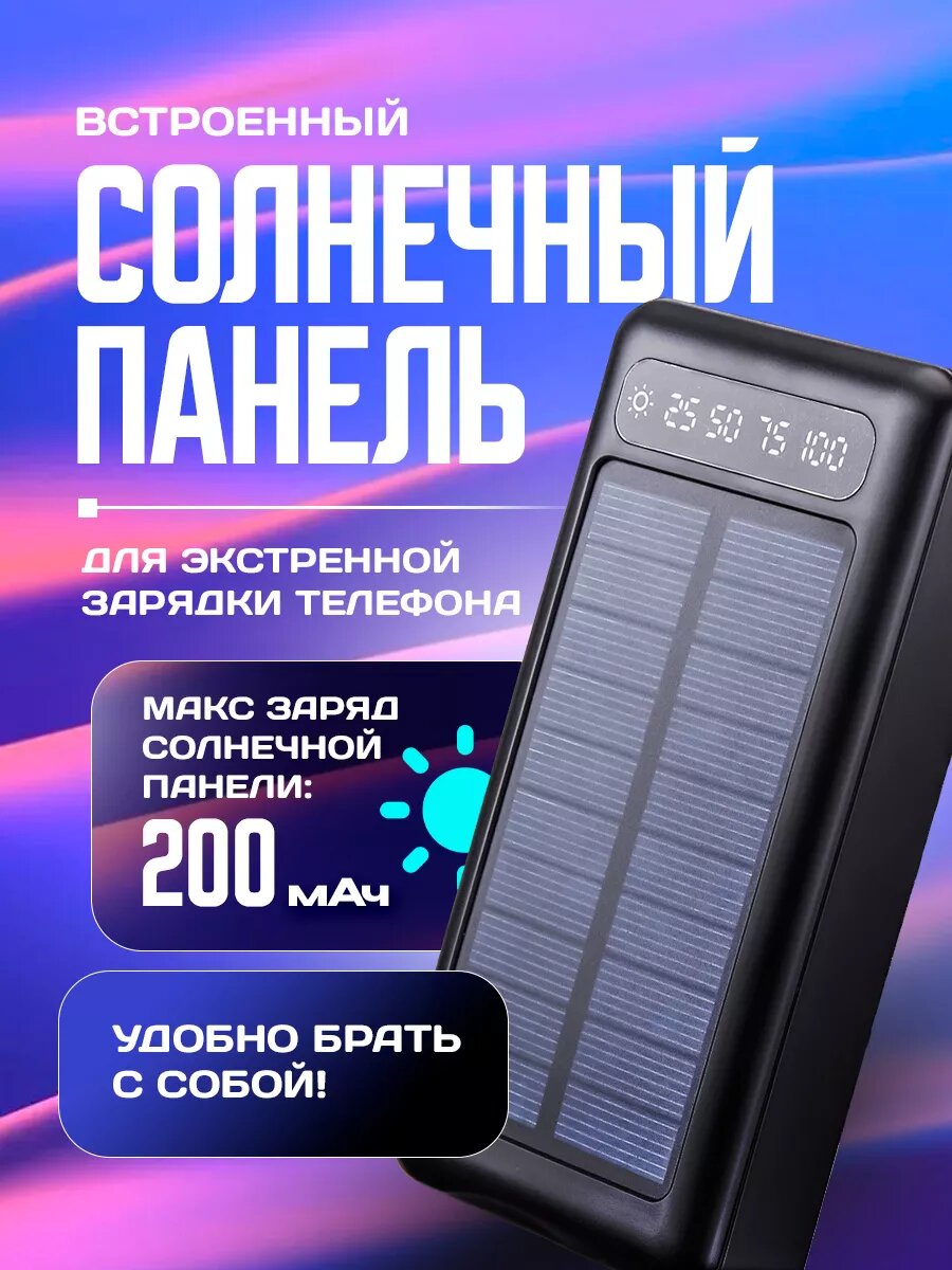 Универсальный Powerbank 50000 mAh со встроенными кабелями, солнечная батарея/Power bank solar energy/ внешний аккумулятор: сравнение цен, характеристики, фото, актуальное наличие и цены.