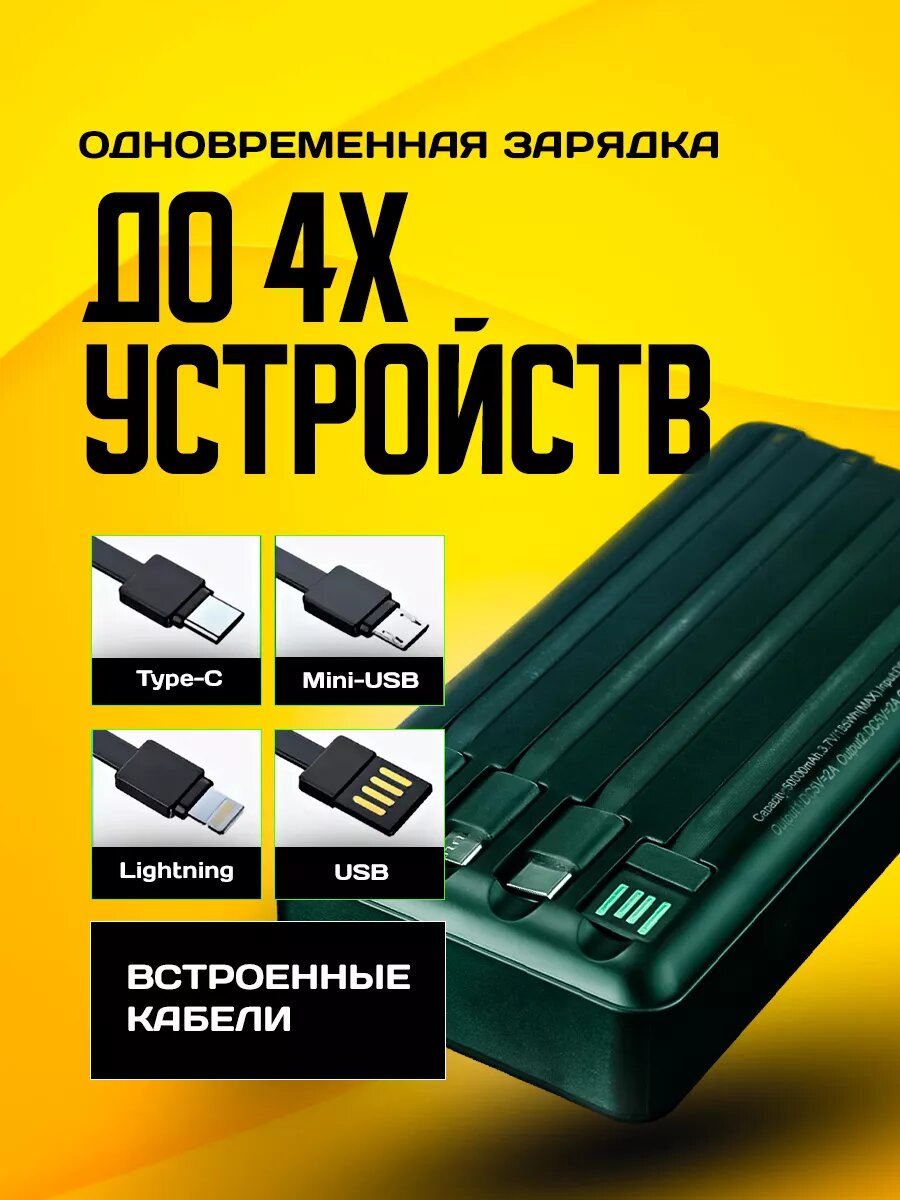 Универсальный Powerbank 50000 mAh со встроенными кабелями, солнечная батарея/Power bank solar energy/ внешний аккумулятор: сравнение цен, характеристики, фото, актуальное наличие и цены.
