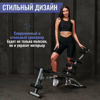 Скамья подходит для проработки различных групп мышц, включая пресс, спину, бицепсы, трицепсы и плечи. Она также идеально подходит для тренировок на брюшной пресс, предотвращая боли в спине и обеспечивая эффективную тренировку всех мышц живота. Пружины толщиной 2,4 мм предназначены для тренировки спины: облокотитесь на спинку и совершайте движения как при обратной гиперэкстензии.