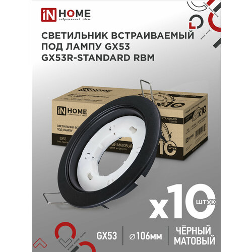 Купить Упаковка 10 шт светильников встраиваемых точечных GX53R-standard RBM-10PACK под GX53 черный матовый IN HOME с доставкой по всей России. Упаковка 10 шт светильников встраиваемых точечных GX53R-standard RBM-10PACK под GX53 черный матовый IN HOME: сравнение цен, характеристики, фото, актуальное наличие и цены.