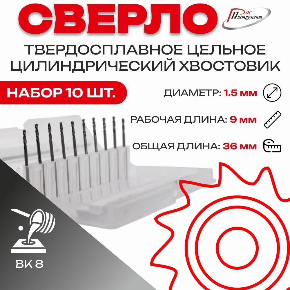 Упаковка 10шт: Сверло тв. спл ц/х цельное кор. 1,5х 9х36 ВК8 2300-3771 ГОСТ 17274-71