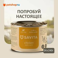 Купить SAVITA консервы для собак «Курица с яблоком и морковью». Влажный корм, 24 шт по 240 г с доставкой по всей России.
