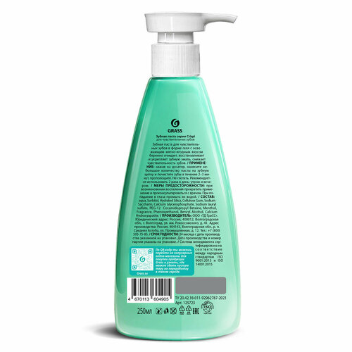 Комплект 6 шт, Зубная паста 250 мл, CRISPI by GRASS, «Для чувствительных зубов», без фтора, дозатор, 125723: сравнение цен, характеристики, фото, актуальное наличие и цены.
