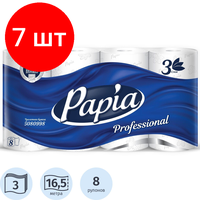 Купить Комплект 7 упаковок, Бумага туалетная Papia Professional 3сл бел 100%цел 140л 8рул/уп 5060404 с доставкой по всей России.