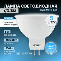 Упаковка светодиодных ламп 5 шт Gauss MR16 5W 530lm 4100K GU5.3 LED 101505205: сравнение цен, характеристики, фото, актуальное наличие и цены.