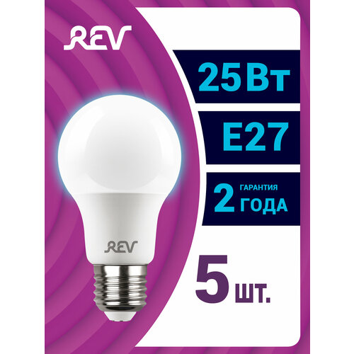 Светодиодные лампы - современный источник света, идеально подходящий для освещения витрин, интерьеров, декоративной подсветки. Они характеризуются низкой температурой нагрева, что позволяет использовать их в декоративных светильниках. Срок службы светодиодной лампы до 30 раз дольше срока службы лампы накаливания. Уровень энергопотребления в 7-9 раз ниже по сравнению с аналогичными по световой отдаче лампами накаливания. В набор входят 5 светодиодных ламп REV груша A60 25 Вт, Е27, 6500K, 2000 Лм, 32419 5up5.