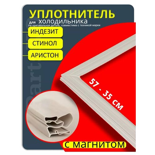 Важно! Перед заказом измерьте размеры самого уплотнителя по внешним углам. Самая распространенная запчасть для холодильника Стинол Indesit Уплотнительная резина для морозильной камеры холодильника упакована в картонную коробку, что помогает избежать замятия, изгибов, поломки магнита и после неплотного прилегания двери к корпусу холодильника. Размер 570x350мм 570 х 350 мм (может также обозначаться как 57х35 см (57 х 35 см), ( 57,1\*35.1 см). Резинка уплотнитель для холодильника стинол требует замены в случаях если он не плотно прилегает, имеются щели, появились трещины или плесень, намерзает намораживает снежная ледяная шуба на стенке. При недостаточном прилегании уплотнителя компрессор холодильника может долго не отключаться, плохо морозить и в последствии выйти из строя. Эти проблемы могут быть вызваны не только реле или термостатом (терморегулятором), но и плохой герметизацией дверцы. Уплотнитель для холодильников Индезит подходит к большинству моделей (запчасть для холодильника Indesit Indezit), резинка для холодильника Стинол ( Stinol), Аристон (Хотпоинт Аристон, Хотпоинт-Аристон, Ariston Hotpoint-Ariston Hotpoint) для отдельно стоящих и встроенных (встраиваемых) в кухонный гарнитур. Способ крепления: уплотнитель фиксируется между металлическим внешним и пластиковым внутренним корпусом двери. Список совместимых моделей: indesit B16 B1601 B16FNF, B16FNFS, B16NF, B16S, B16T, B18, B18. LFNF, B18DFNF, B18NF, B18S, B20DFNF, RFCNF340A, RFCNF340A RFNF305A, RFNF305A. В данном списке представлены не все совместимые модели, перед заказом измерьте уплотнитель по внешним углам. уплотнение уплотнительная прокладка холодильной морозильной камеры уплотнение двери морозилки с магнитом