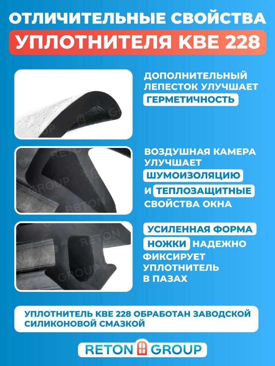 Уплотнитель для стеклопакетов - профессиональный резиновый герметик для пластиковых окон и дверей обеспечивает плотное примыкание створок к раме, которое гарантирует шумоизоляцию и звукоизоляцию в помещении. Уплотнитель на окна бренда Reton Group изготовлен из безопасного материала EPDM резины и не имеет резкого запаха. Подходит для многих профилей окон ПВХ, например: KBE, Rehau, Veka, Proplex, Krauss, Montblanc, Exprof, Novotex, Kaleva, Brusbox и их аналогов. Со временем фурнитура пластиковых окон и дверей теряет свои свойства начинается продувание в местах прилегания резинки на створке к раме, уплотнитель для пластиковых окон защитит от сквозняков и конденсата на окнах , отлично герметизирует и шумоизолирует помещение. Резиновый уплотнитель для окон обладает высокой эластичностью и долговечностью 15-20 лет. Уплотнитель KBE 228 универсальный обработан силиконовой смазкой, по этому дополнительных средств для его установки вам не потребуется. Резина устойчива к морозу и ультра-фиолетовым (УФ) лучам. Благодаря своей камере внутри уплотнителя и самой структуре имеет высокую степень сжатия деформации, позволяя устранить продувание. Оконная фурнитура KBE 228 предлагается в размере 250метров и 50 метров идет В подарок . Выгодный размер отлично подойдет для оконных мастеров,а так же для всех пвх окон и пластиковых дверей в доме,квартире, офисах. Утеплитель профессиональный усиленный доставляется в транспортировочном коробе . Намотка 300 метров укомплектована дополнительно на картонную бухту . Вы можете быть уверены,что товар прийдет отлично упакованным! Уплотнитель для окон и дверей представлен в черном цвете. Для ухода за уплотнителями используйте только предназначенные для этой цели средства.