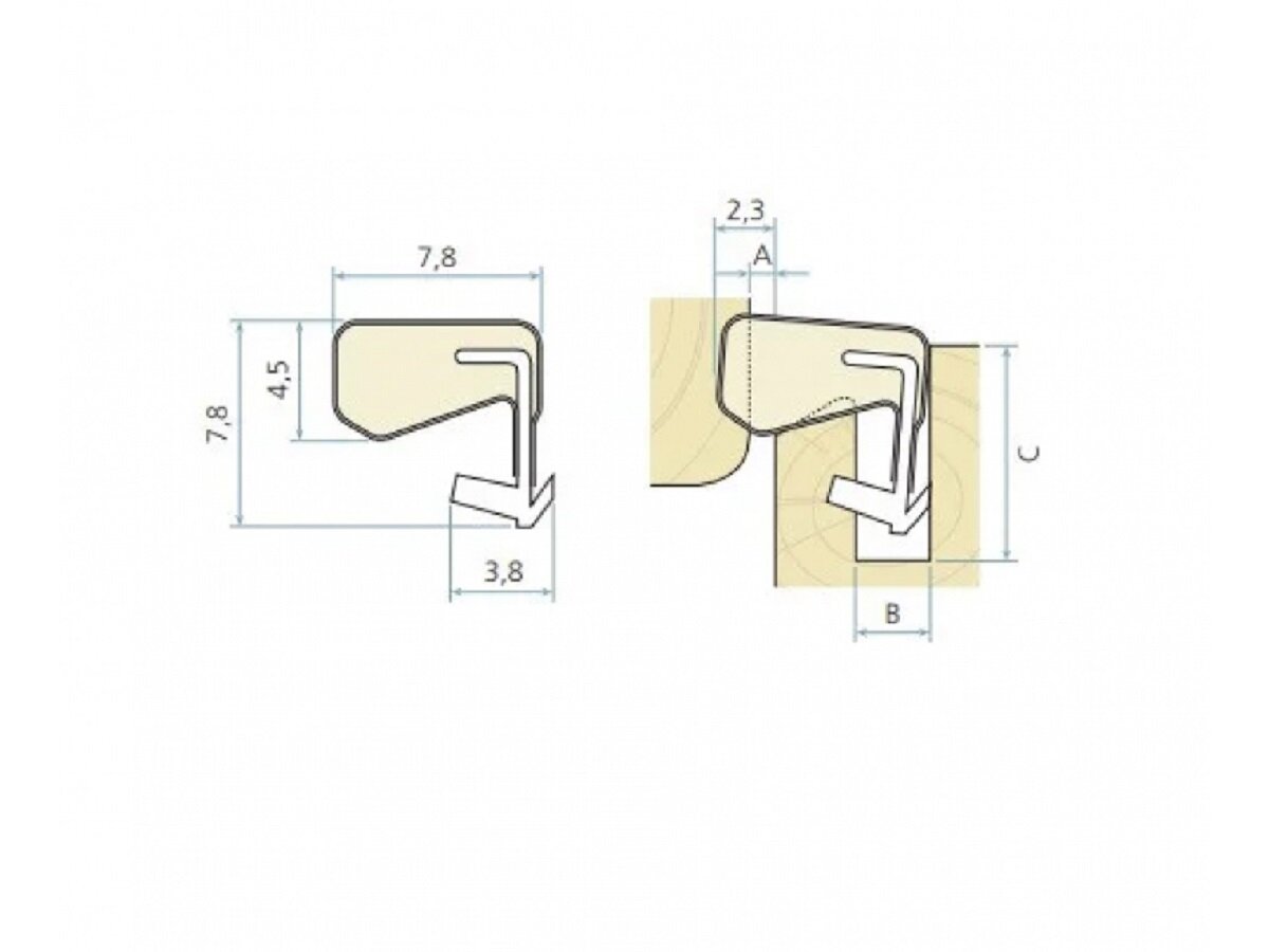 Характеристики: Уплотнительный зазор (А): от 0,0 мм до 1,5 мм Минимальная глубина канавки (В): 8,0 мм Ширина канавки (С): 2,7 - 3,0 мм