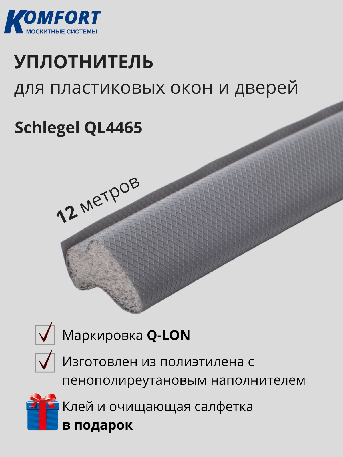 Уплотнитель Шлегель Schlegel Q-LON для окон и дверей ПВХ QL-4465 серый 12 м: сравнение цен, характеристики, фото, актуальное наличие и цены.
