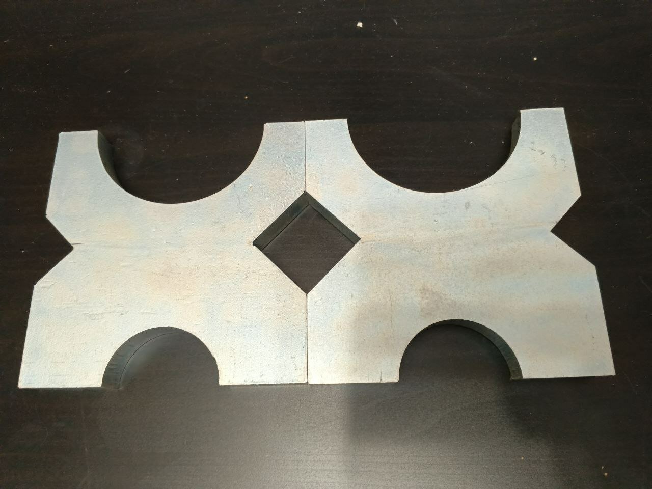 Размеры пластин составляют 150 мм в длину, 150 мм в ширину и 18 мм в толщину. Диаметры кругов равны 100 мм и 60 мм, а размеры квадратов - 28 х 28 мм и 42 х 42 мм.