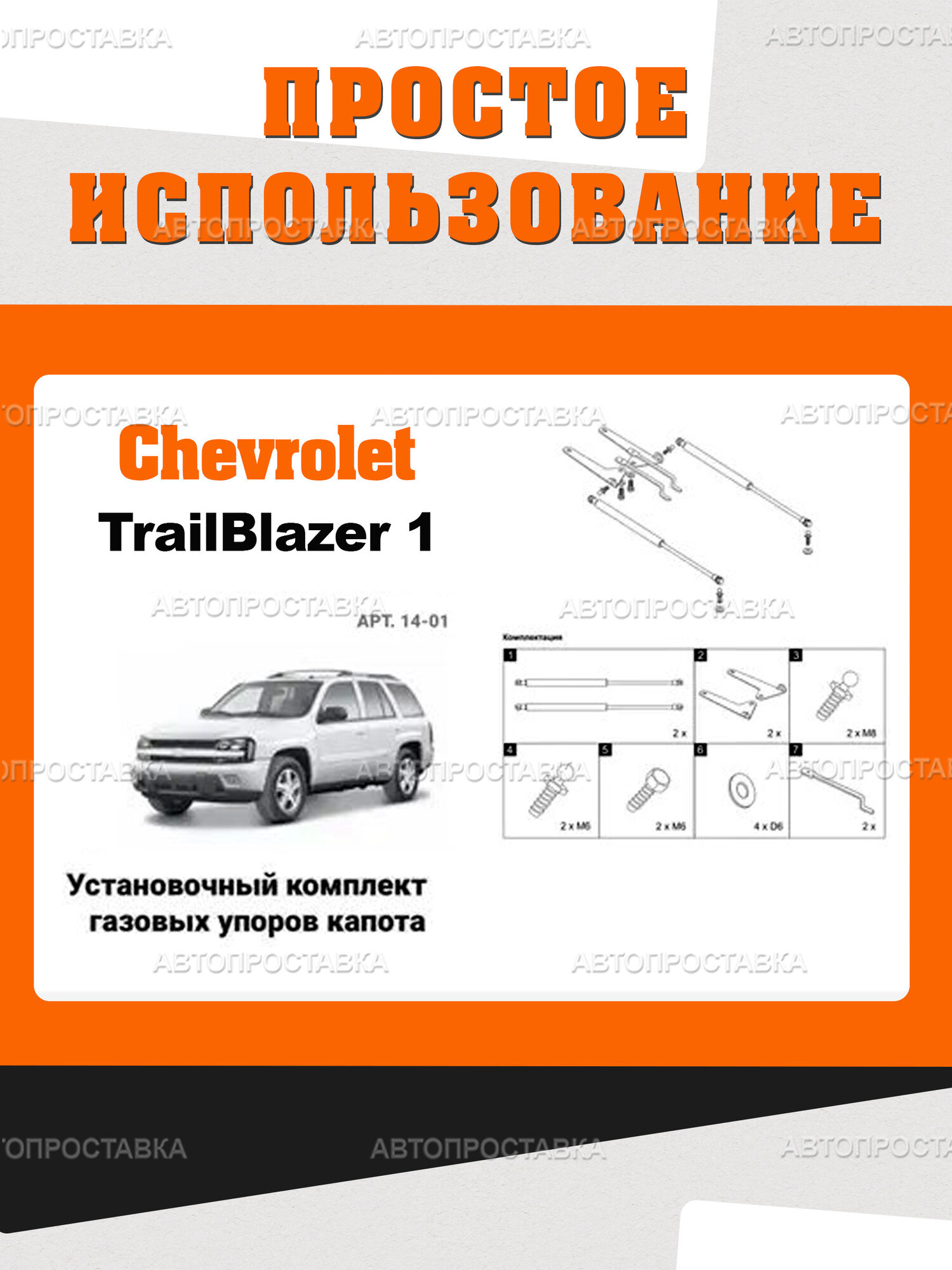 Упоры капота для Chevrolet TrailBlazer (I), 2001-2009 / Газовые амортизаторы капота Шевроле Треил Блейзер