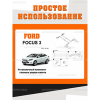 Упоры капота для Ford FOCUS (lll) 2011-2019 / Газовые амортизаторы капота Форд Фокус