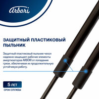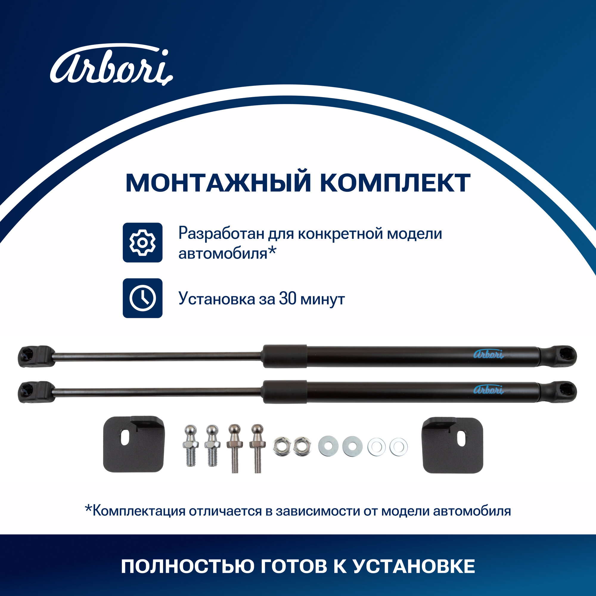 Динамические Упоры капота ARBORI плавно и комфортно открывают и закрывают капот автомобиля. Упоры ARBORI расчитаны на 20 000 циклов открытия-закрытия при температурном режиме от -30C до +80C. Установка комплекта упоров, в соответствии с инструкцией, занимает 20-30 минут и производится исключительно в штатные крепления автомобиля, без дополнительного сверления кузова. Пластиковый грязезащитный пыльник, оцинкованный крепёж и полимерное покрытие монтажных элементов, делают Упоры Капота ARBORI устойчивыми к агрессивной внешней среде. Упоры ARBORI разработаны с учётом особенностей каждой модели автомобиля, с сохранением штатного угла открытия капота.