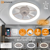 Купить Управляемая светодиодная люстра с вент. FAN SIMPLE 45W+15W R-APP-460×120-WHITE/WHITE-220-IP20 с доставкой по всей России.