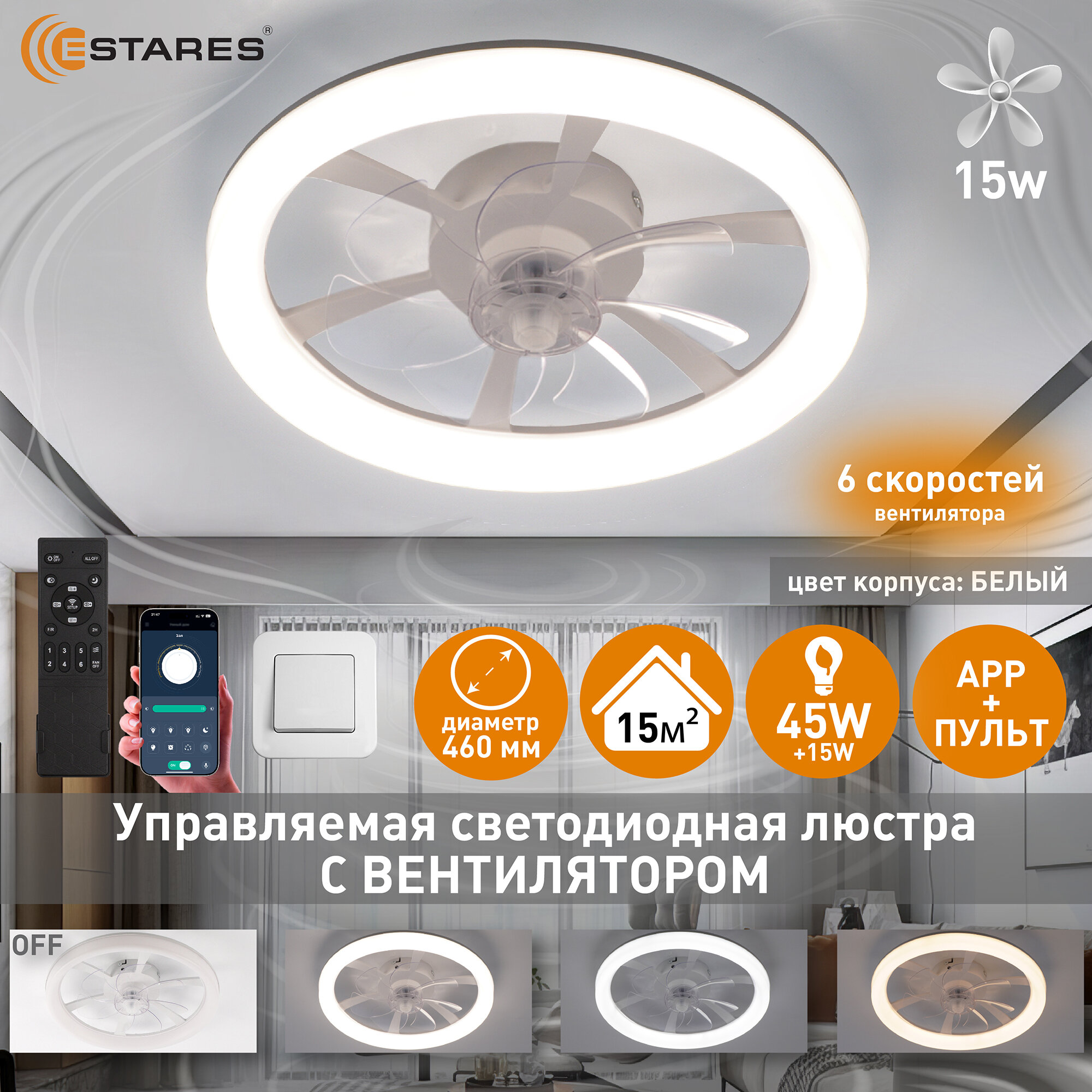 Управляемая светодиодная люстра с вент. FAN SIMPLE 45W+15W R-APP-460×120-WHITE/WHITE-220-IP20: сравнение цен, характеристики, фото, актуальное наличие и цены.