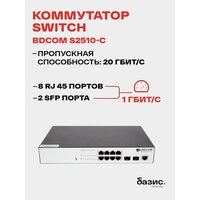 Управляемый коммутатор (свитч) BDCOM S2510-C, 8 портов RJ45 1000 Мбит/с , 2 порта под (SFP): сравнение цен, характеристики, фото, актуальное наличие и цены.