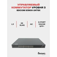 Управляемый коммутатор уровня 3 BDCOM S3900-24T6X, 24×10/100/1000Base-T, 24×100/1000Base-X SFP, 6×1/10GE SFP+, Hot Swap БП 1+1, в комплекте 1x PSU AC: сравнение цен, характеристики, фото, актуальное наличие и цены.