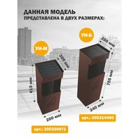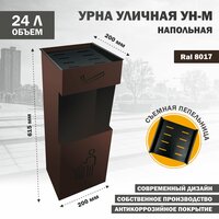 Модель УН-М выполнена в приятном коричневом цвете, что делает ее заметной и привлекательной. Урна предназначена для напольной установки без крепления, что обеспечивает простоту и удобство использования.