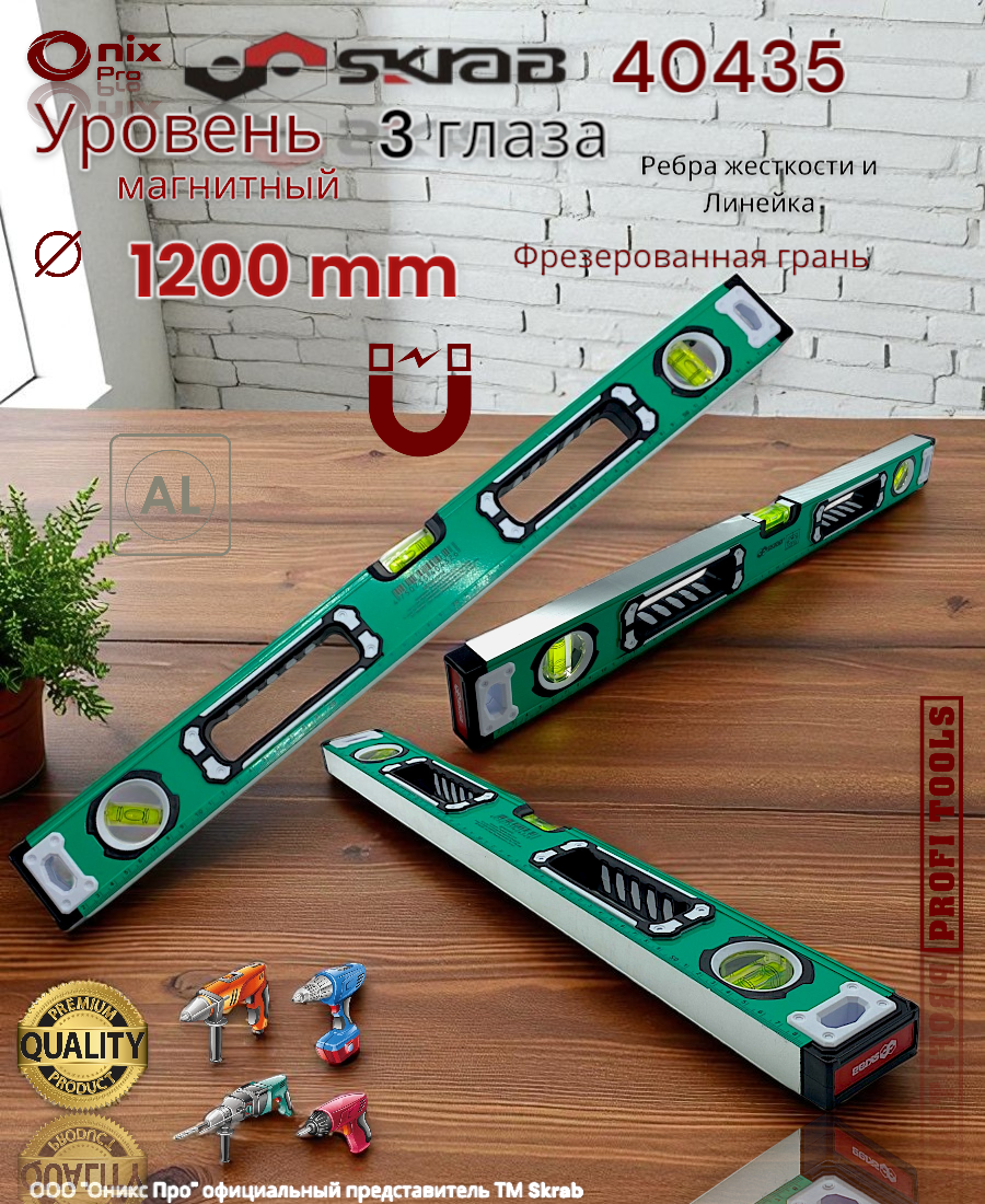 Уровень 1200мм магнитный усиленный Фрезерованная грань 3-х гл. Зеленый Skrab 40435: сравнение цен, характеристики, фото, актуальное наличие и цены.