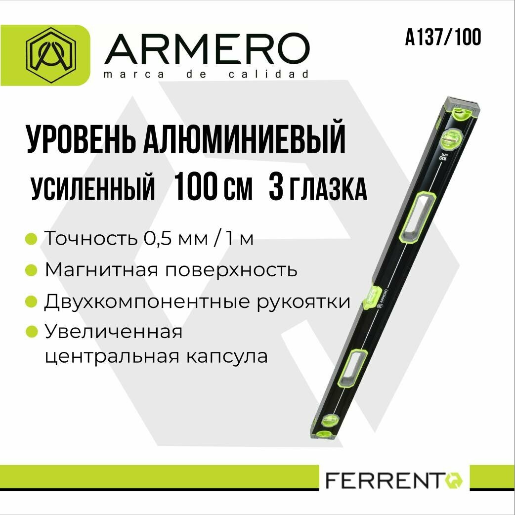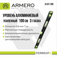 Купить Уровень алюминиевый, усиленный, 100 см, 3 глазка, Armero, A137/100 с доставкой по всей России. Уровень алюминиевый, усиленный, 100 см, 3 глазка, Armero, A137/100: сравнение цен, характеристики, фото, актуальное наличие и цены.