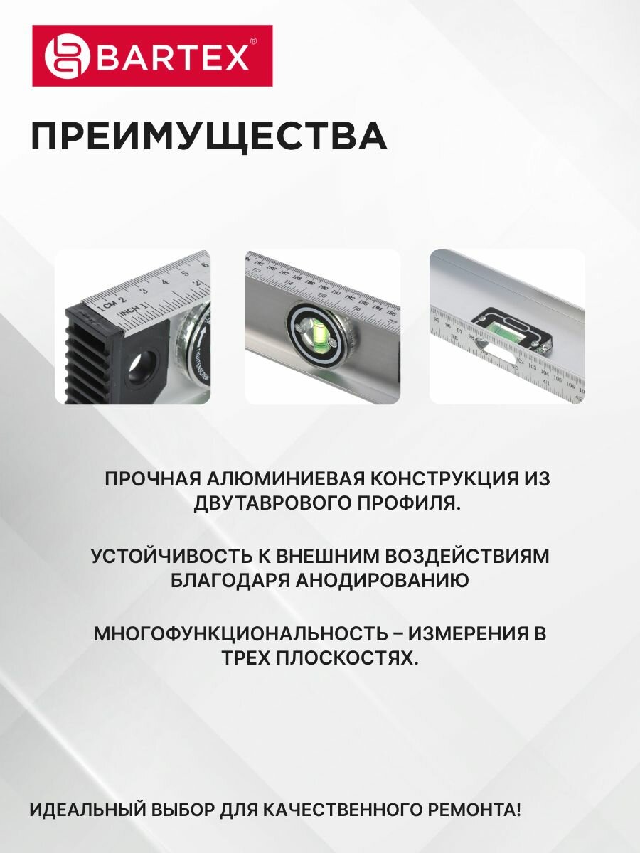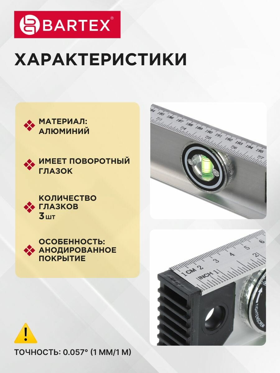Уровень алюминий, 2000 мм, 2 глазка + 1 поворотный, линейка, рельс, серебристый, Bartex, №0021, HJ-82D: сравнение цен, характеристики, фото, актуальное наличие и цены.
