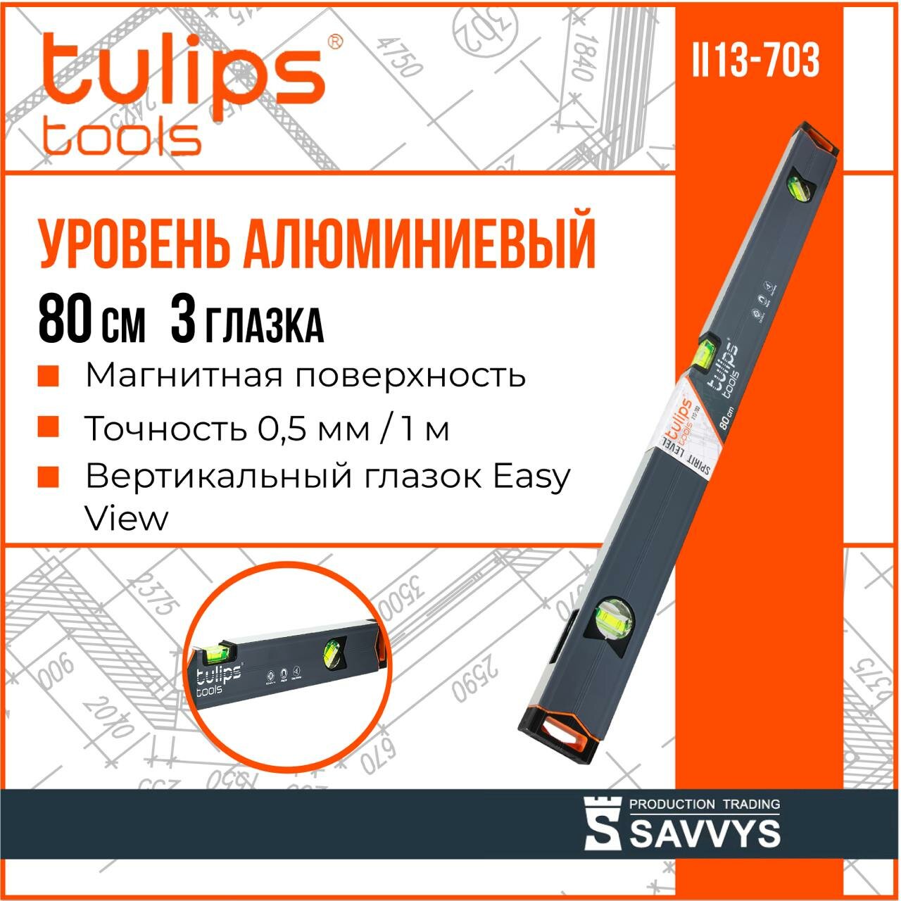 Уровень коробчатый Tulips tools II13-703, 80см, 3 глазка, с магнитом.: сравнение цен, характеристики, фото, актуальное наличие и цены.