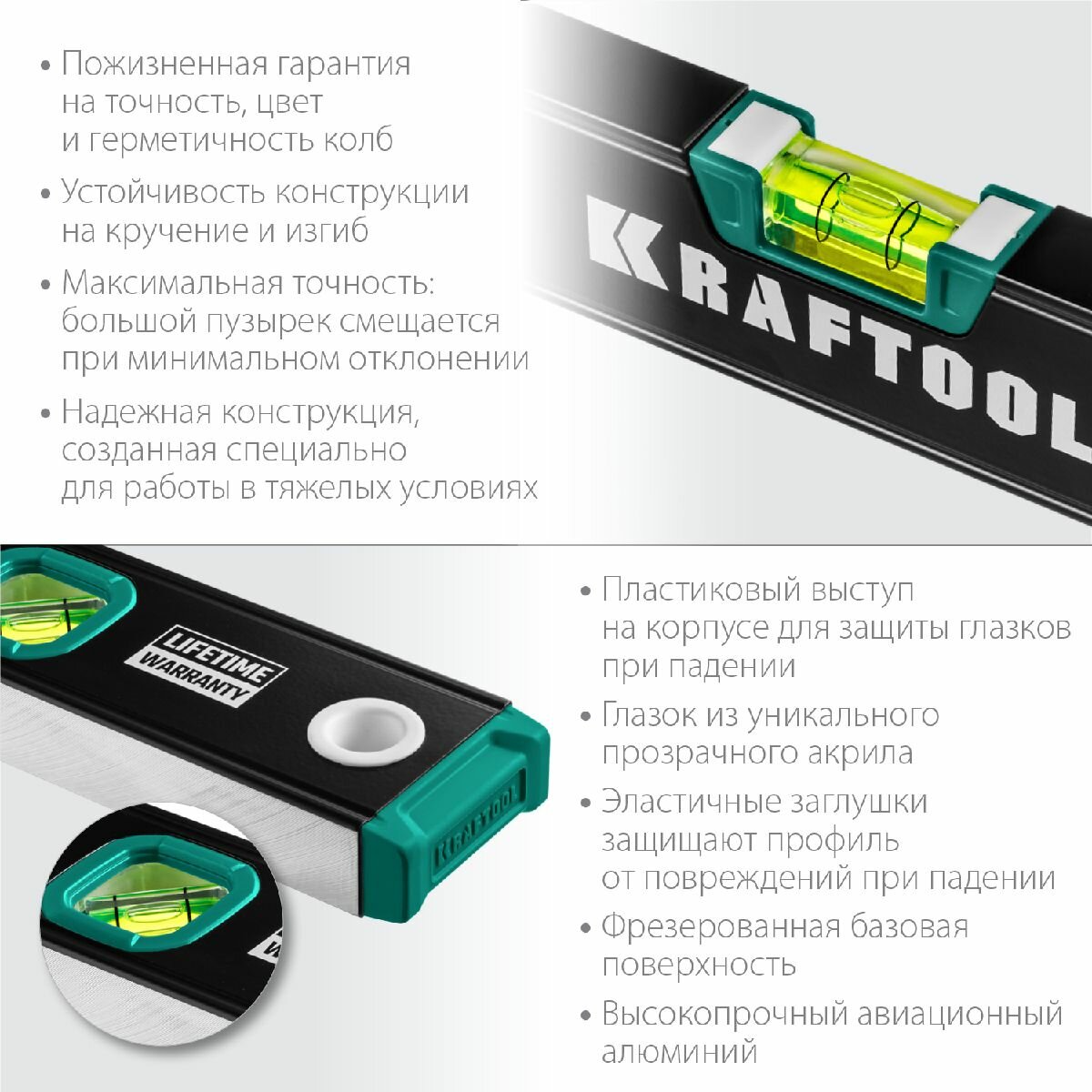Купить Уровень KRAFTOOL коробчатый 2000 мм с зеркальным глазком 3 колбы точность 0.4 мм/м фрезерованная поверхность с доставкой по всей России.